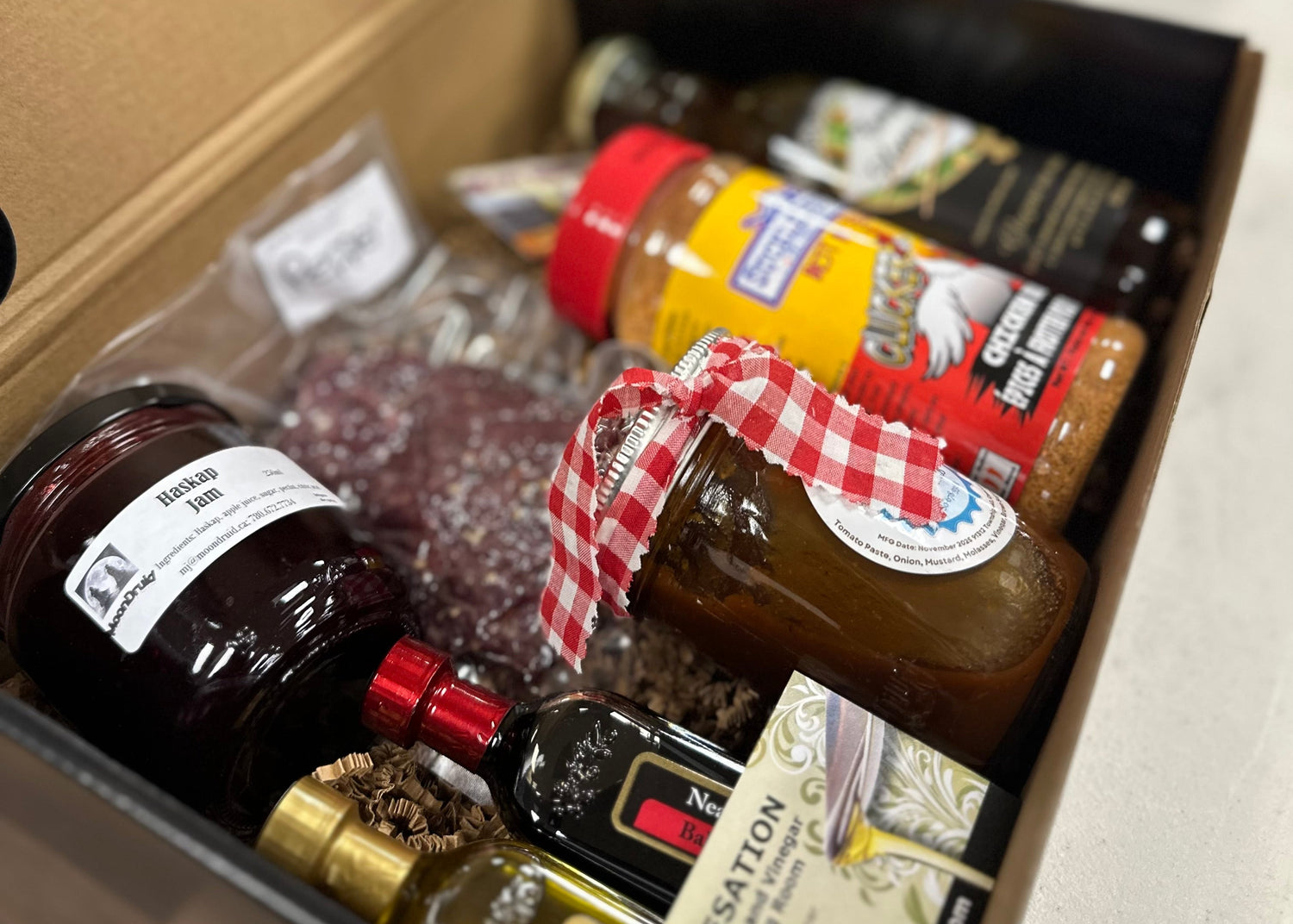 The Savoury Box is perfect for food lovers, featuring Rocky Mountain Equipment’s signature spice, Daysland Meats jerky, Vinesation olive oil and balsamic vinegar, Moon Druid jelly, Cherry Lane BBQ Sauce, and Beary Berry Honey Inc. Sauce. A bold, flavour-filled taste of our region.